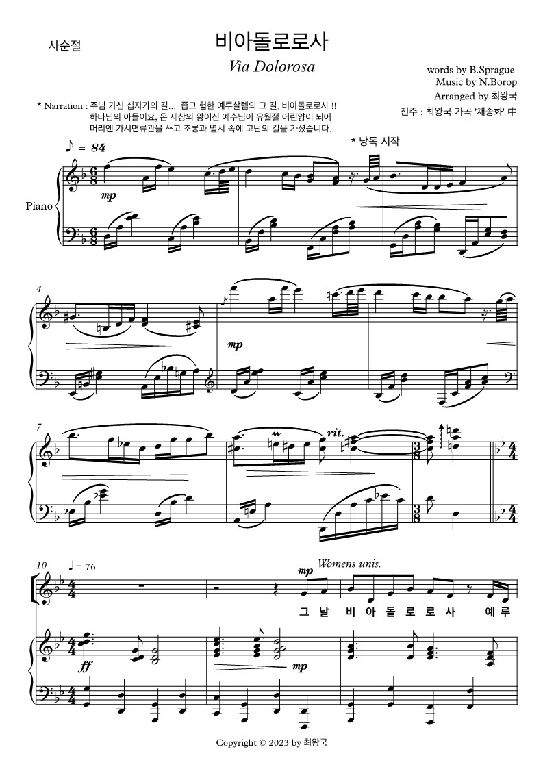 이용안내 해당 상품은 청약철회 및 환불이 제한적인 상품입니다. 결제확인후 24시간 이내 이메일로 교회/성가대명이 워터마크된 악보를 보내 드립니다. 단, 편곡은 별도 통보 해 드립니다.